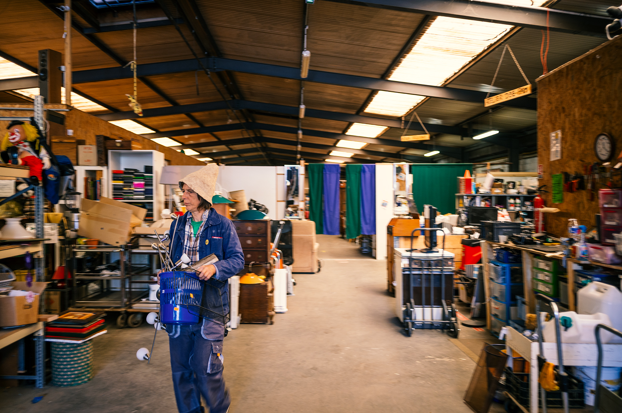 De l’autre côté de la ressourcerie, les espaces sont délimités pour que chaque membre de la Coopérative y trouve sa place, en fonction de ses compétences : réparations multimédias, électroménager, tri de livres et CD, atelier tricot à l’étage, sans oublier le coin menuiserie et métal ouvert aussi aux particuliers qui veulent bricoler. « On a beaucoup de profils très différents : jeunes, retraités ou actifs qui viennent le week-end ou pendant les vacances. Certains sont très investis sur les questions écologiques, d’autres aiment l’idée de la débrouille ou viennent avec l’envie de partager un savoir-faire qu’ils veulent valoriser, ou simplement créer du lien social », dit Laetitia