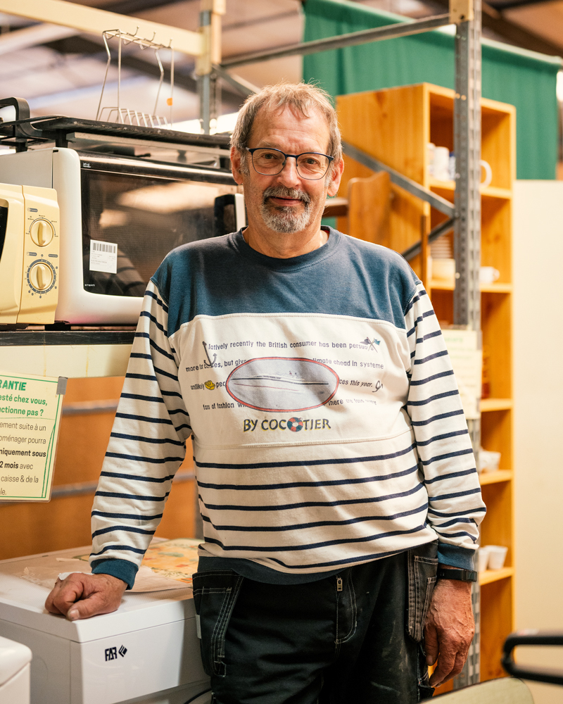 Du côté de la ressourcerie, l’engagement est tout aussi concret : environ 130 tonnes d’objets sont collectées chaque année, et seuls 8 % ne peuvent être ni réemployés ni recyclés. Le reste est trié, réparé, valorisé ou redirigé vers des partenaires spécialisés du recyclage lorsque le réemploi est impossible. La Coop met aussi en place un système de traçabilité pour suivre les flux, notamment lors des collectes en déchèterie organisées avec la communauté urbaine Caen la mer. « On constate que l’on vit dans une société dopée à produire, consommer et jeter », rappelle Michel. « Alors qu’ici, on produit, on consomme et on réemploie. » Une philosophie en circuit court qui s’inscrit dans une économie circulaire, aux antipodes du modèle linéaire dominant. Et qui rappelle au passage qu’on ne vit pas mieux en consommant plus, mais peut-être en jetant moins. « L’idée c’est de mobiliser aussi les citoyens à venir nous voir, parce que quand on voit le nombre d’objets qu’on récupère, ça interroge sur ce qu’on produit et consomme », conclut Laetitia.